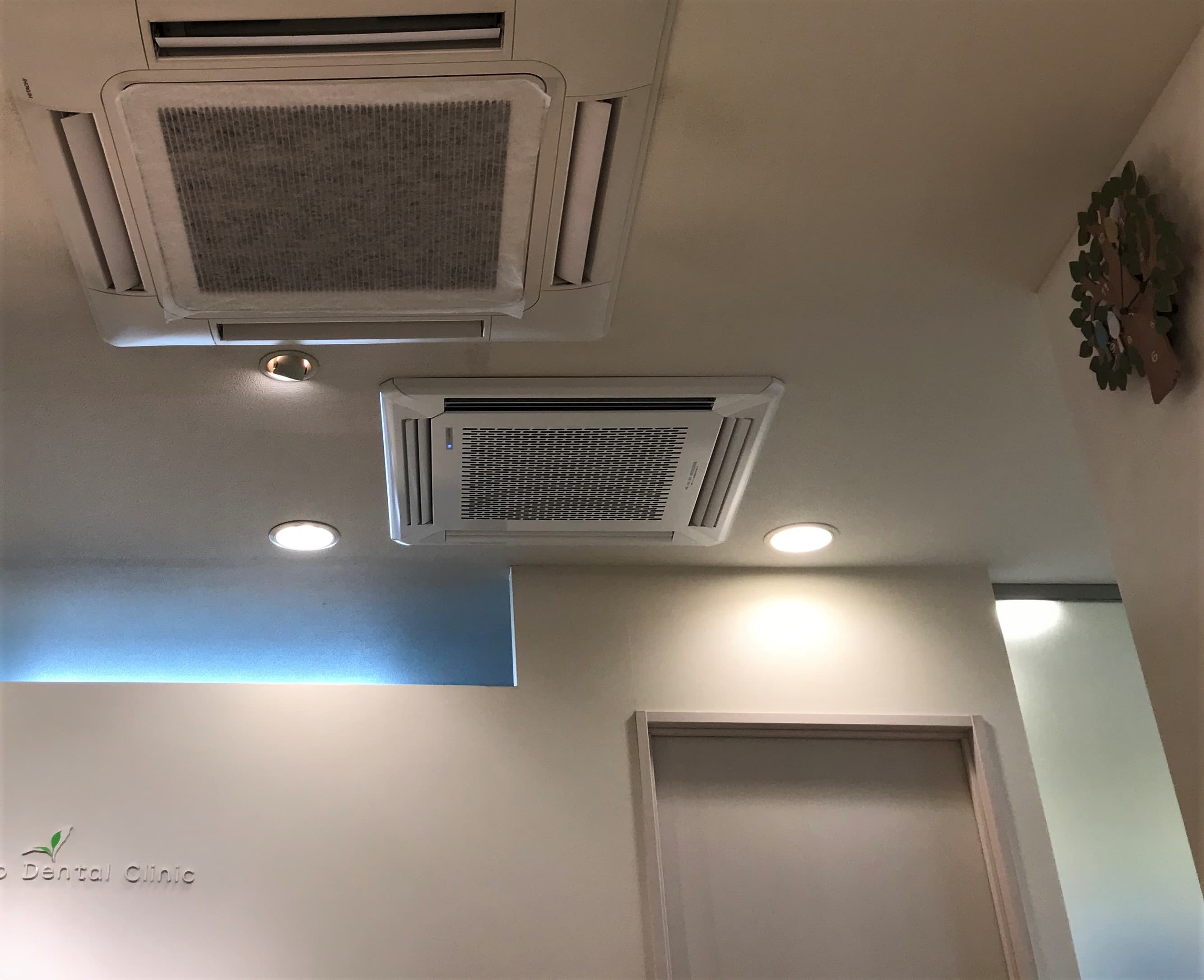 これにより院内の空気は常に清潔であり、空気中の細菌、ウイルス、治療中に出るほこりを強力に除去します(0.01ミクロンの汚染物質もキャッチ)。花粉症の方にも良い環境となり得ます。