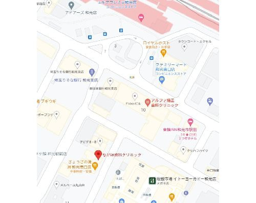 東武東上線・副都心線・有楽町線・和光市駅下車、南口より徒歩2分イトーヨーカドー和光店を目指してください。
